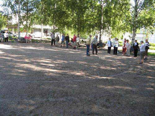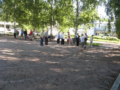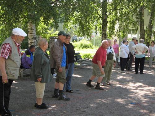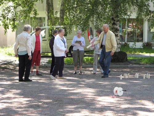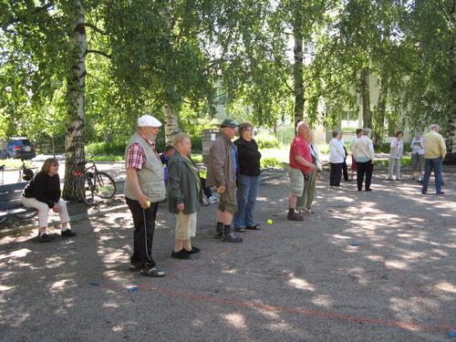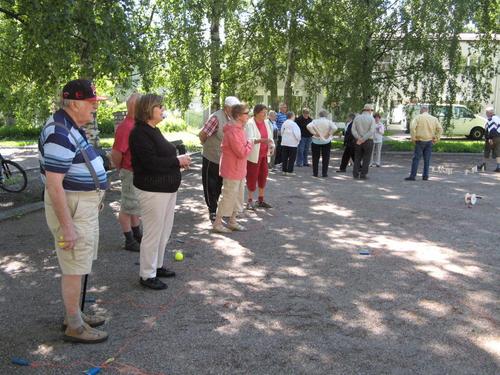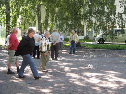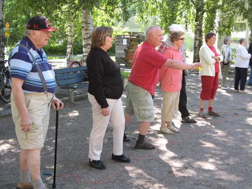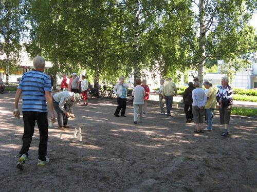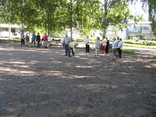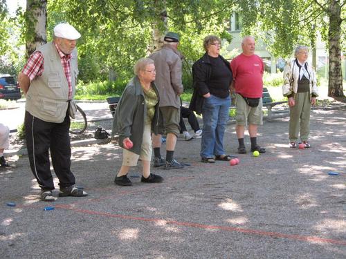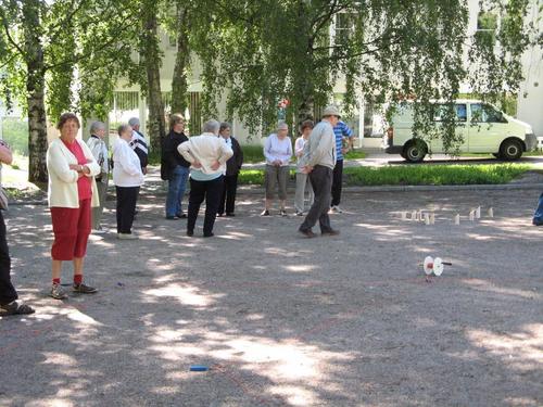 Ulko-Boccia ja Mölkyn pelaamista kesällä 2013 Tapanilan torilla