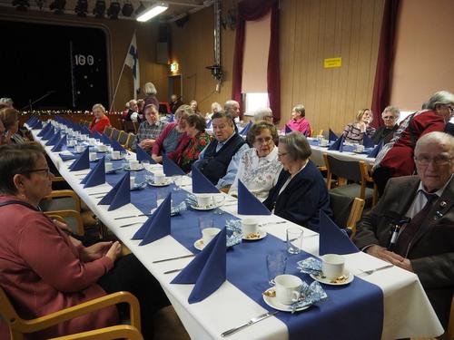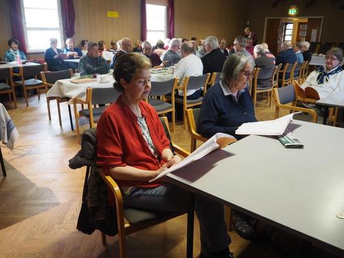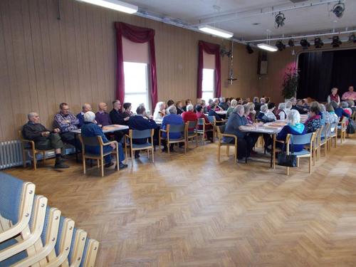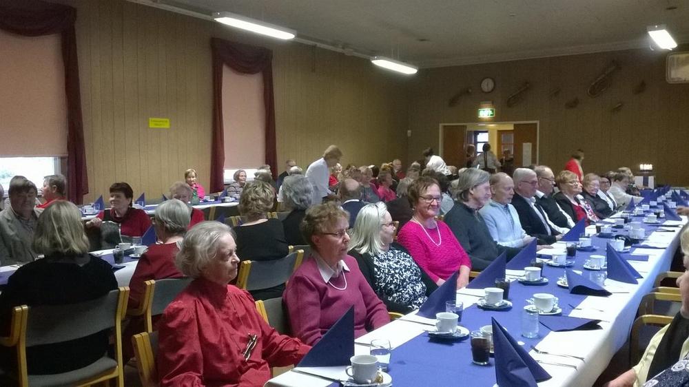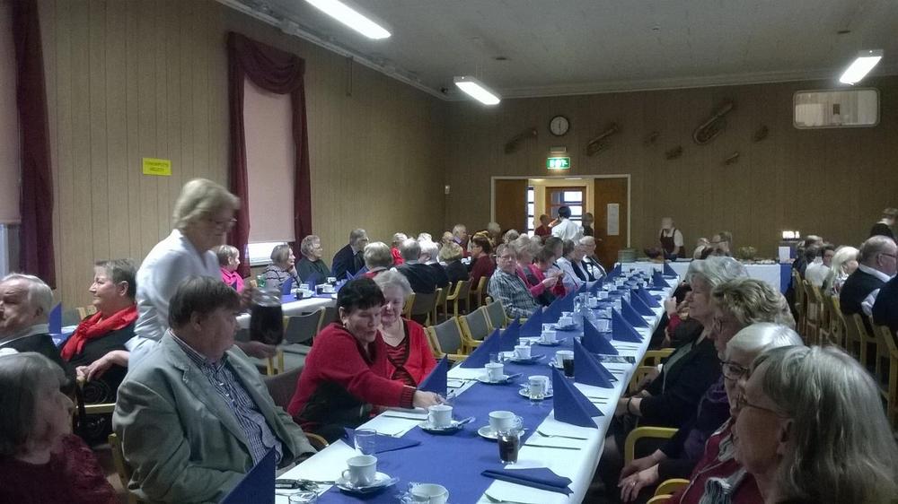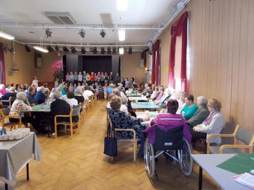 Sali oli täynnä taitavia laulajia. Kuorosta ja yleisöstä muodostuikin satapäinen laulumeri yhteislaulujen kaikuessa. Sekä kuoro, että yleisö oli tyytyväinen tapahtumaan. Kiitoksia sateli kuorolle ja kiitoksia satelee yleisölle Seniorilaulajien puolelta.
