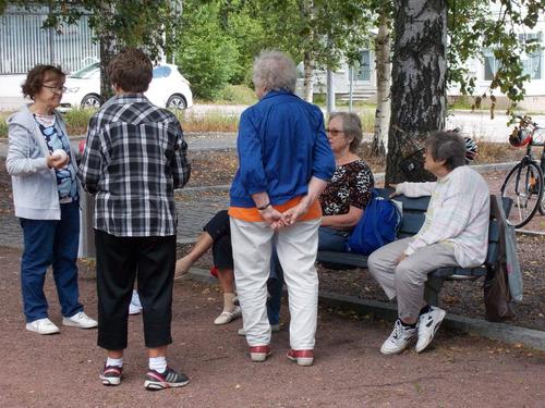 Tapanilan Seniorilaulajat aloittivat kesälomansa kävelemällä rinnakkain meren rannalle.